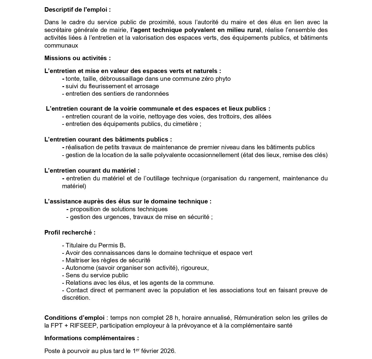 La commune de Monthault recrute un Agent technique polyvalent en milieu rural (F/H) – Temps non complet (28h)